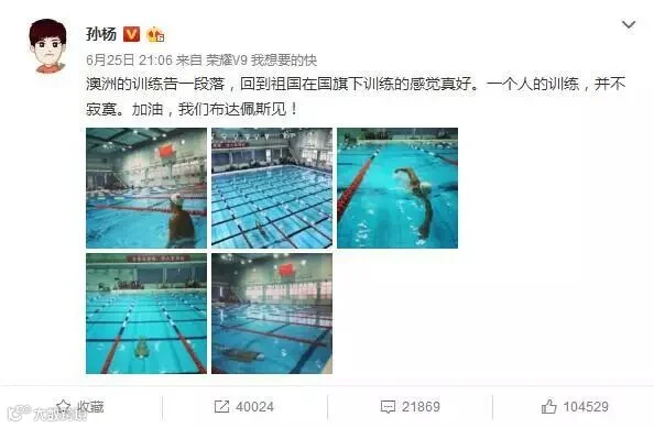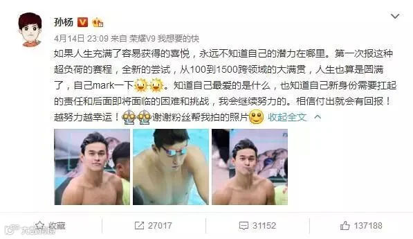 金牌的背后是常人难以想象的付出!在赛前,孙杨的肌肉就开始有剧烈的疼痛感,这是因为备战世锦赛的训练中实在太苦太累,他甚至在训练中被练哭。在孙杨的微博上可以看到,这一年来的生活,基本上除了训练还是训练。
