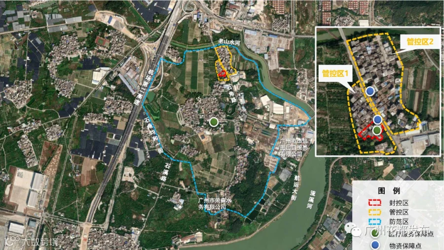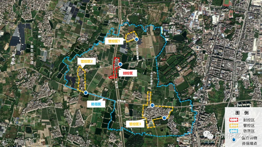 花东镇石角村:北至农田,南至石角村向西庄路口,东至石角路,西至农田(封控区除外);北至老山水河,南至广州新邦高分子材料有限公司,东至农田,西至石角路。