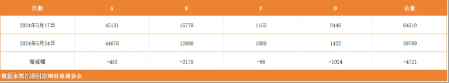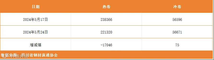 以上表单中的数据完全由川钢协信息统计部人员客观采集自相关钢厂、库房和贸易企业,川钢协力求数据及内容的准确、客观,但不能保证其完整性或准确性;本数据简报仅供浏览者参考,并不构成建议,川钢协不对该数据、简报及使用该数据和简报所导致的结果承担责任。