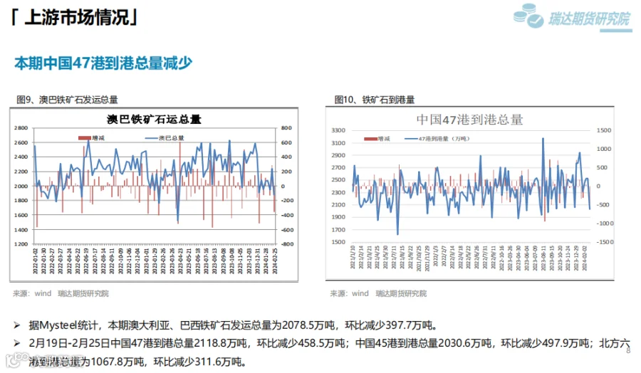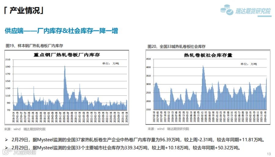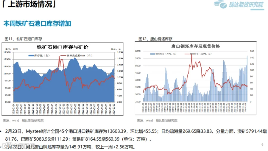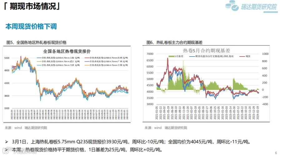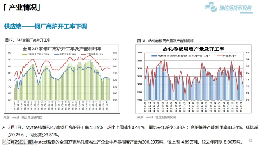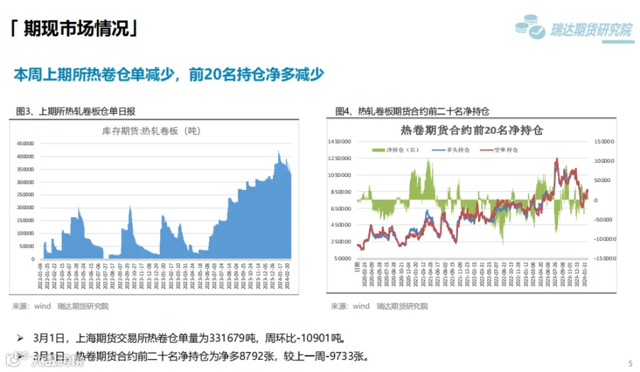 本周(2.23—3.1)热卷价格延续震荡偏弱。周初利好消息支撑热卷反弹,国家矿山安全监察局表示,将扎实抓好全国“两会”期间矿山安全防范工作。煤炭供应减少预期支撑焦煤和焦炭价格大幅走高,带动热卷价格减仓走高。但后半周再度走弱,随着元宵节后,民工返程增多,热卷现货成交有所回暖,但整体弱于预期,库存量继续提升,同时市场情绪相对悲观。下周(3.1—3.8)供应端,热卷周度产量继续小幅萎缩,产能利用率处在75%上方,整体上供应相对稳定。需求端,随着民工返程,终端需求回暖,但力度相对有限,库存量或延续小幅增加。最后,由于供应相对宽松制约价格反弹空间,而宏观面整体向好,同时钢企陷入亏损亦将抑制下行空间。