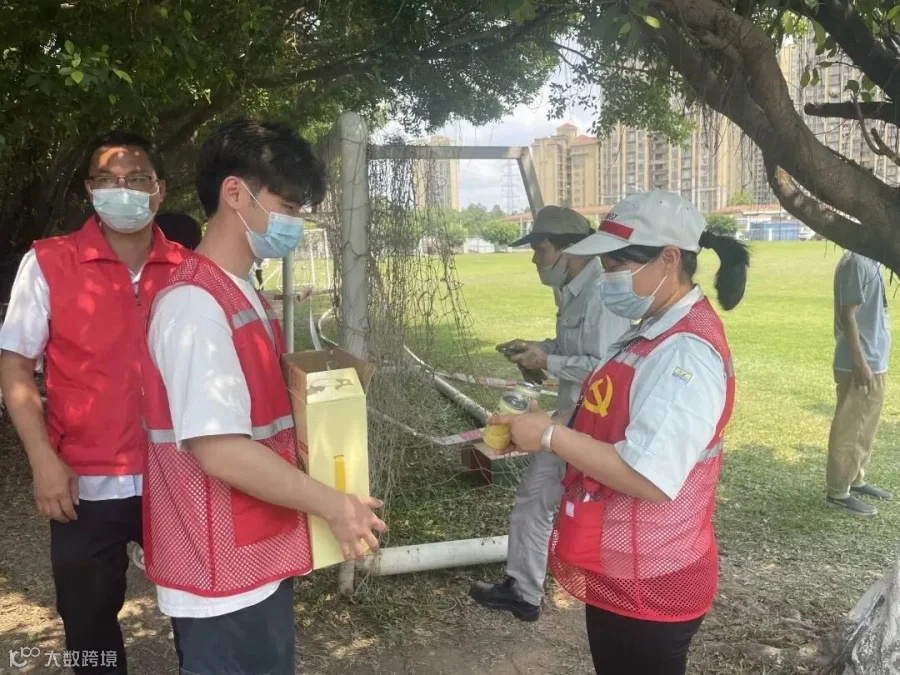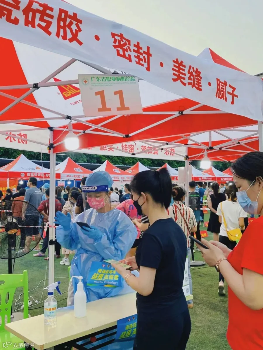 拜迪团支部95后团员张凌锋、陈俊旻在收到抗疫支援通知后,主动请缨,支援钟村万宝核酸检测点,为检测人员检查健康码、协助不会使用手机的群众打开检测码,并为医护团队、社区服务志愿者送上广药刺柠吉、荔小吉解暑。