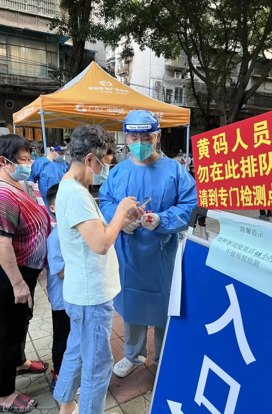“我是团员,我先上!”李文珺在报名后迅速到达战疫岗位,按要求穿戴好防护服后,拿上粤核酸二维码开始志愿工作。“请大家保持好距离,打开粤康码和行程卡,扫一下我手中的二维码,里面信号不好,大家要截图保存哦!”她一遍又一遍地引导着大家,遇到一些不会亮码的老人,她耐心地提供帮助。居民的一声声“谢谢”,是她最好的动力。因为前来测核酸的人数过多,没有时间休息喝水,声音也逐渐沙哑,但她仍然坚守岗位,坚持工作,与医务工作者、党员志愿者一起奋战到凌晨两点。