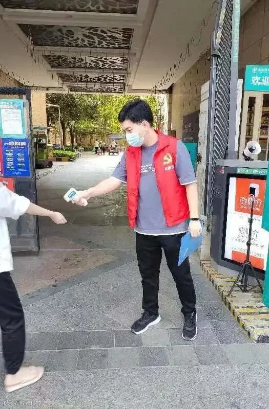 4月8日晚,集团本部团员李展韬收到白云区和社区党务中心关于需要通宵完成第一轮全员核酸检测的通知后,迅速报名参加社区核酸检测服务工作,负责引导现场社区居民有序排队。之后的几天,又听从党务中心统一调配,在小区入口负责测温验码、逐门逐户排查和全员核酸检测排队引导工作。闷热的天气,汗水打湿了衣裤,但他毫无怨言,全心投入,一次次耐心细心地帮助社区居民录入信息。
