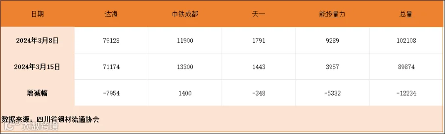 以上表单中的数据完全由川钢协信息统计部人员客观采集自相关钢厂、库房和贸易企业,川钢协力求数据及内容的准确、客观,但不能保证其完整性或准确性;本数据简报仅供浏览者参考,并不构成建议,川钢协不对该数据、简报及使用该数据和简报所导致的结果承担责任。