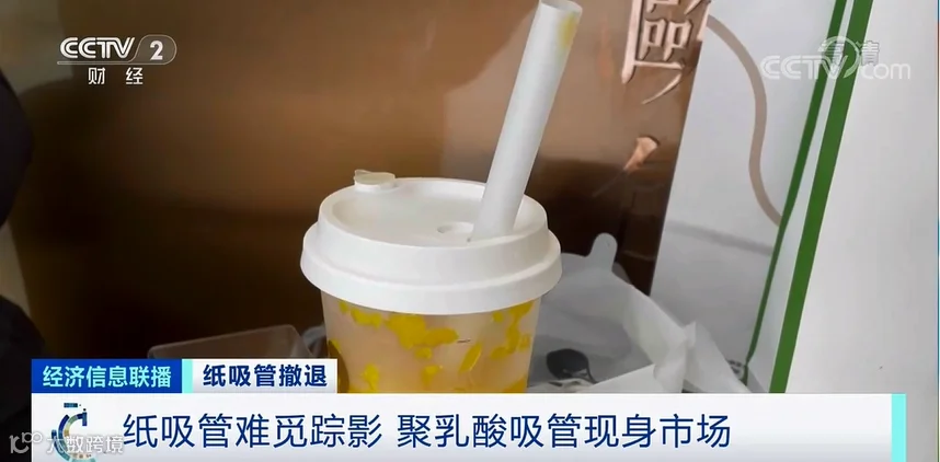 在浙江义乌一家吸管企业的仓库里,企业负责人李二桥正在和仓库管理员商量一批过期吸管的处置问题,这是他们在2021年初生产的一批聚乳酸吸管,由于超过了一年的质保期,性能已经大幅下降,用手一捏已经呈现一种降解粉碎的状态,这个仓库里有接近3000箱这样的报废吸管,损失货值大约有四五十万。