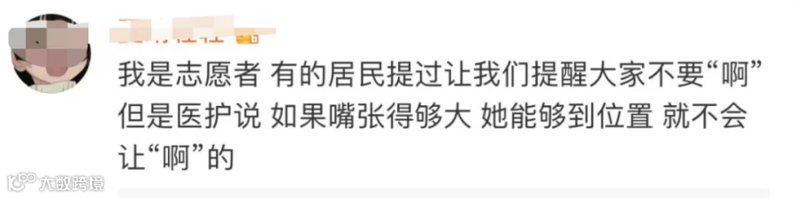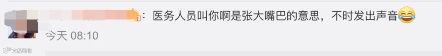 有些阳性病人在“啊”的时候,气溶胶就出来了,病毒就出来了。张开嘴时,你可以告诉自己在“啊”,但是最好不要对外呼气,憋住一下呼吸,“啊”一下主要是为了方便做出口型。
