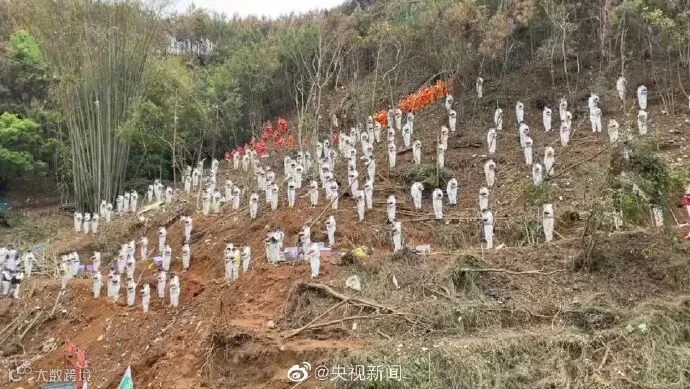 3月27日下午,“3·21”东航MU5735航空器飞行事故遇难者集体哀悼活动在事发地搜救现场举行,对遇难者表示哀悼。