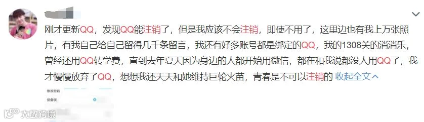 而更多的网友,不愿意注销,是因为QQ承载了,自己所有的青春!