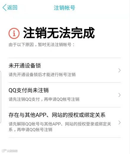 不过要想把QQ注销也并非易事,南方君按照流程注销时就出现了如下提示,导致注销无法完成: