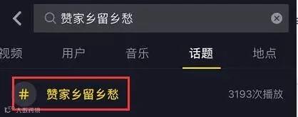 方式一:登陆抖音短视频app,在首页搜索框输入“赞家乡留乡愁”,选择“话题”标签,进入活动页面。
