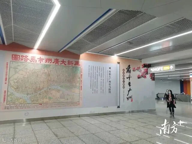 一边是广州生生不息的历史文脉,一边是“大湾区最快地铁”车站,乘客步履匆匆,穿梭古今之间,别有一番滋味。