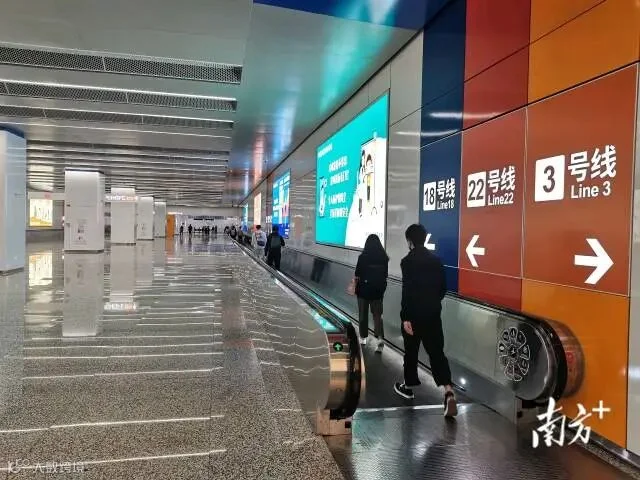 继3号线、18号线,22号线的开通,意味着番禺广场坐拥三条地铁线,贯通南沙、番禺、海珠、天河、白云多个区域,“本来还担心会非常拥挤,没想到这么开阔,扶梯和步梯都很多。”周先生说,听说22号线要开通了,自己是特地来参观的。