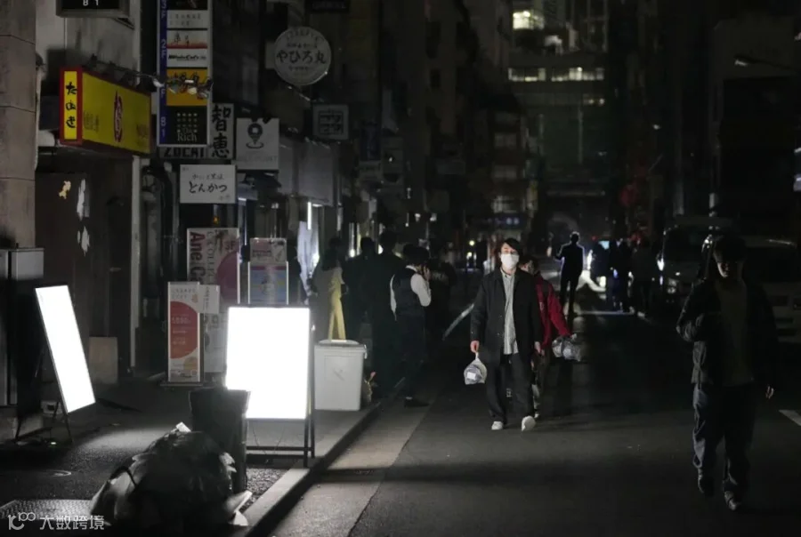 3月16日,地震导致东京市新桥附近的商业街停电。新华社/共同社