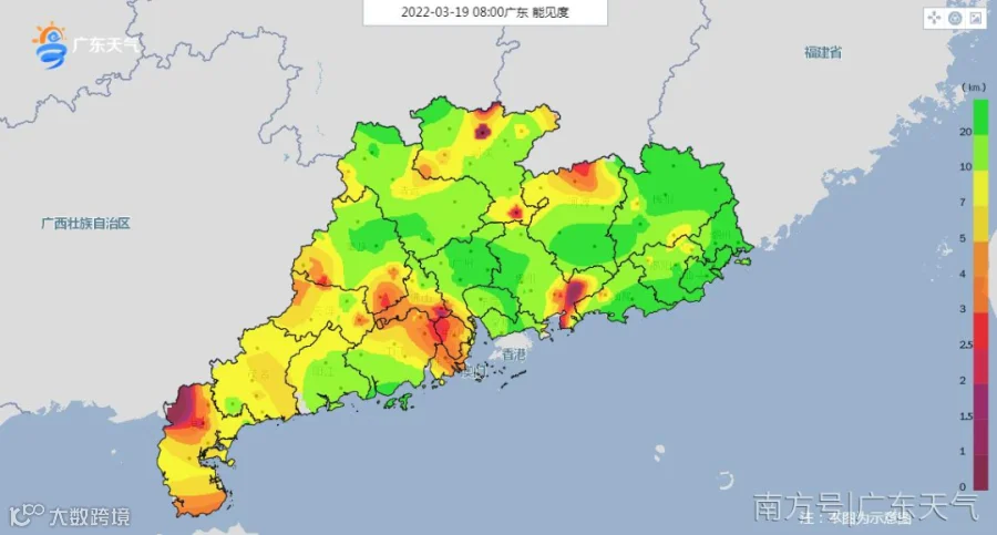 3月19日早晨广东能见度示意图
