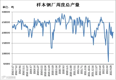 (11月4日-11月10日)四川省钢材流通协会对四家样本钢厂关于建材产量统计数据显示,本周A、C较上周分别增加6000吨、3000吨;B、D较上周减少5463.96吨、2400吨。四家样本钢厂总产量为202557吨,周环比增加1136吨。