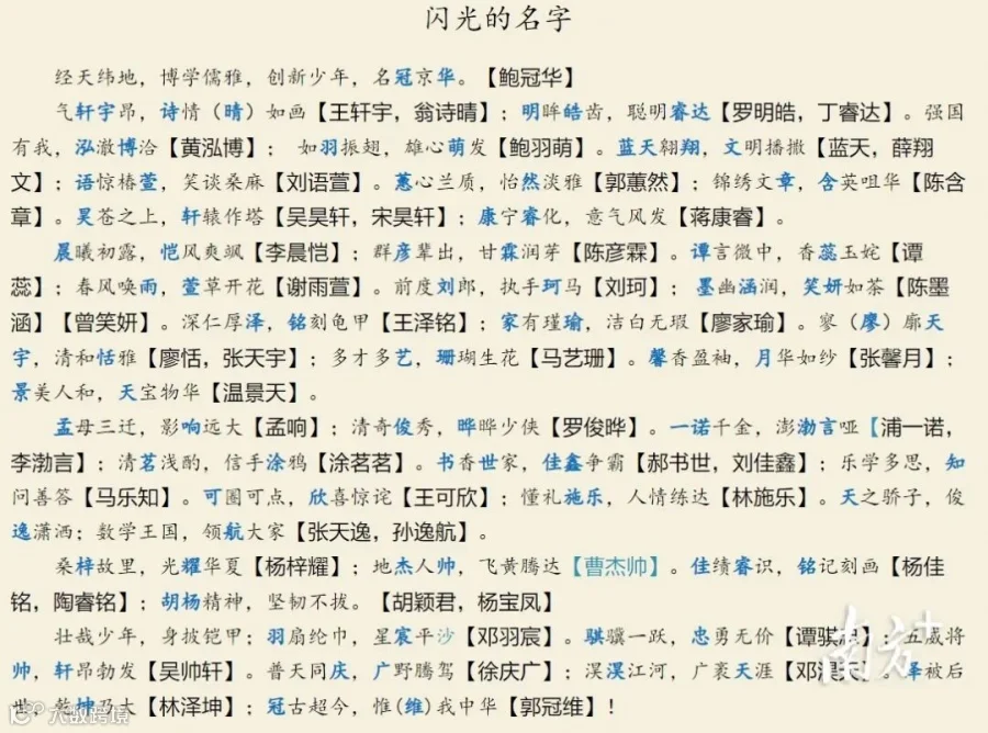 仿《千字文》写下了这篇《闪光的名字》