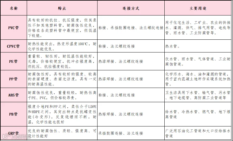 塑料管的材质分类、特点与用途