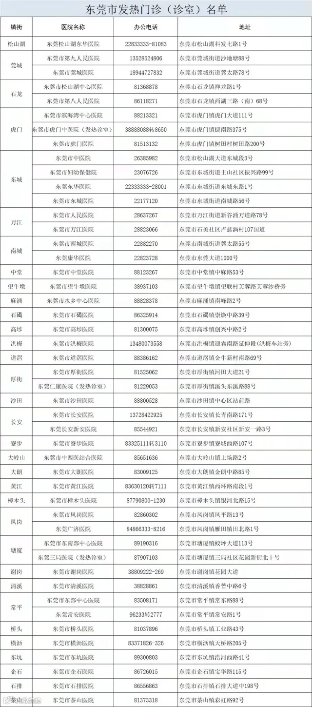 十、广大市民要树立“自己是个人健康的第一责任人”意识,按照政府的部署,有序配合开展全员核酸检测;坚持勤洗手、常清洁、用公筷等良好卫生习惯,落实“测温、亮码、戴口罩”防控措施;做好自我健康监测,一旦出现发热、干咳、乏力、嗅(味)觉减退、鼻塞、流涕、咽痛、结膜炎、肌痛和腹泻等不适症状,立即前往广东医科大学附属东莞第一医院、东莞三局医院就诊排查,就医途中全程佩戴口罩,避免乘坐公共交通工具。
