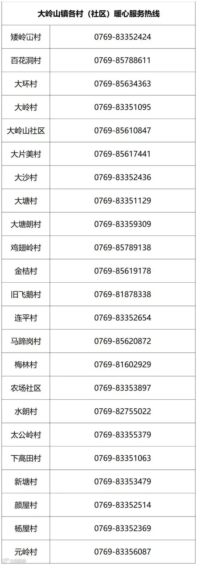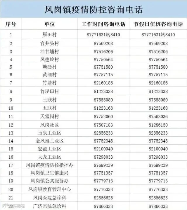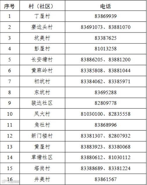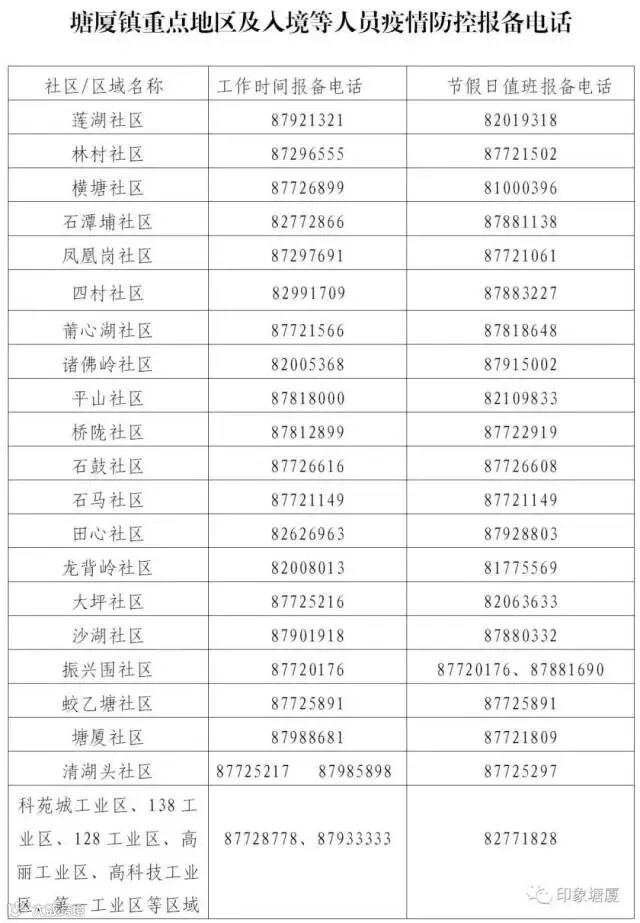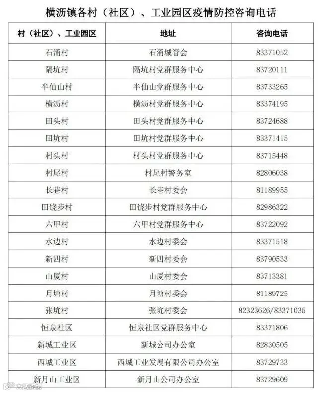 东坑镇村(社区)疫情防控工作热线电话