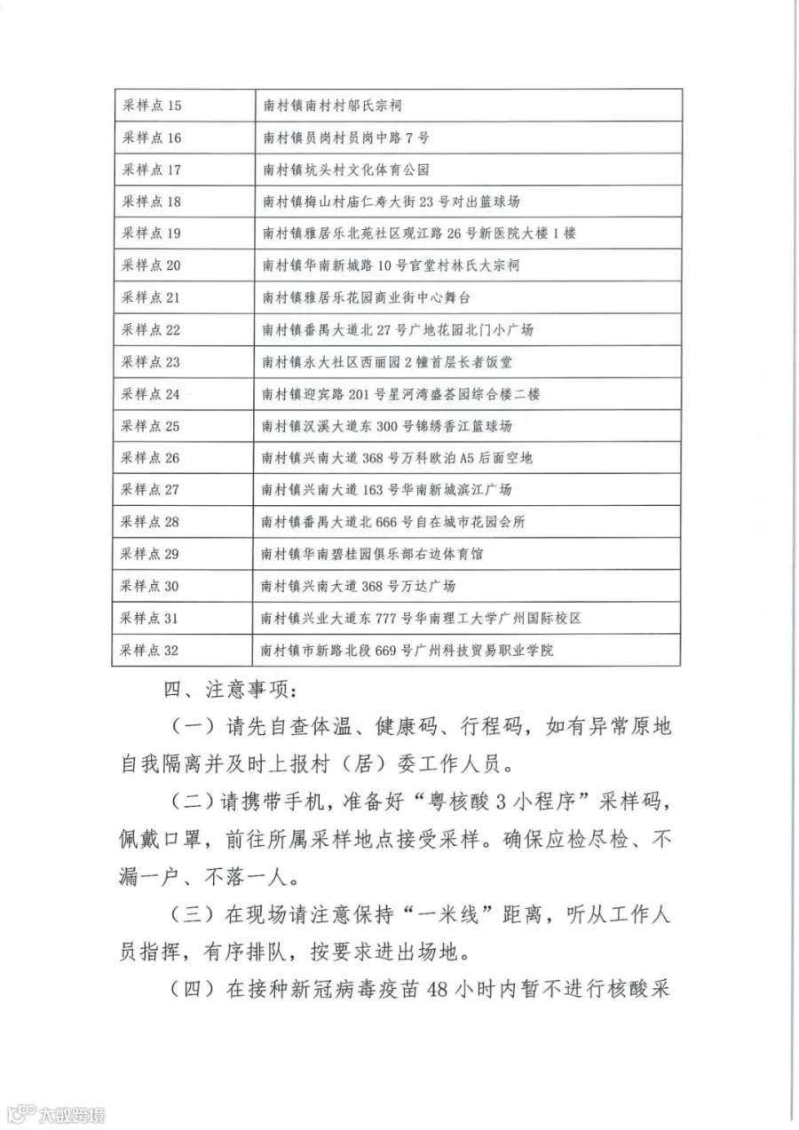 今晚7-12点,番禺区南村镇开展大规模核酸检测