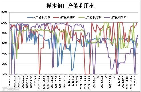 (2.17-2.24)四川省钢材流通协会对四家样本钢厂关于建材产能利用率统计数据显示,B、C、D较上周分别上调6.22%、8%、5%;A持平。