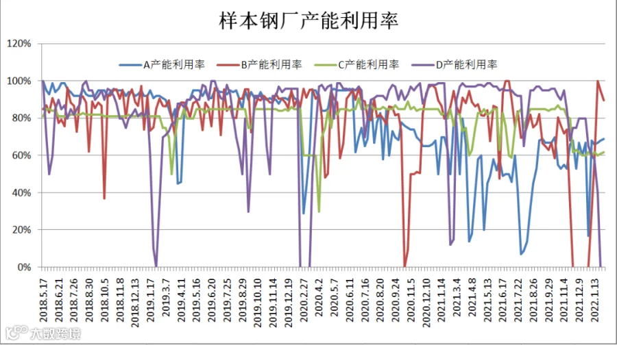 (1月28日-2月10日)四川省钢材流通协会对四家样本钢厂关于建材产能利用率统计数据显示,A、C较上周分别增加1%;B较上周减少5.19%;D开工率仍为0。