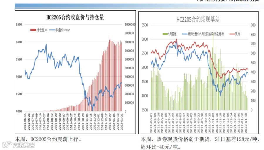 技术上,HC2205 合约日线 MACD 指标显示 DIFF 与 DEA 运行于 0 轴上方;BOLL 指标显示上 轨与中轴开口向上。操作上建议,考虑于 4700-4900 区间低买高抛,止损 60 元/吨。