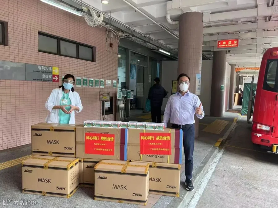 3月1日,由广州海外联谊会筹集的100万个N95口罩,经水路运抵香港并交由香港广州社团总会用于防疫抗疫支援工作。同时,香港广州社团总会筹集4000盒连花清瘟胶囊,将于未来几日派发给有需要的在港乡亲。