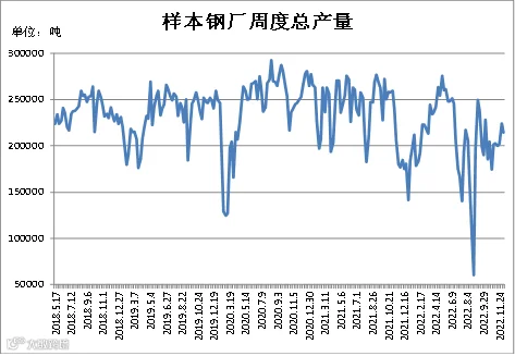 (12.2-12.9)四川省钢材流通协会对四家样本钢厂关于建材产量统计数据显示,本周B、C、D较上周分别减少5571.12吨、2500吨、1700吨;A与上周持平。四家样本钢厂总产量为214175吨,周环比减少9771吨。
