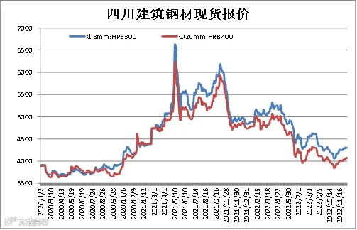 统计数据显示,成都建筑钢材现货价格与上期所螺纹钢期货价格存较强联动性,基差正常波动区间为-100-300元/吨。本周现货价格弱于期货,12月9日成都Φ20mmHRB400现货价为4080元/吨,RB2305合约期价为3945元/吨,基差为135元/吨,周环比-111元/吨