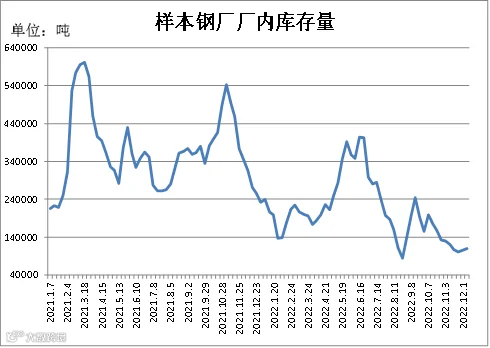 据四川省钢材流通协会对四家样本钢厂关于建材厂内库存统计数据显示,截至12月9日,A、C较上周分别增加1000吨、7000吨;B、D较上周分别减少1335.851吨、1500吨。四家样本钢厂厂内总库存量为110749吨,周环比增加5164吨。
