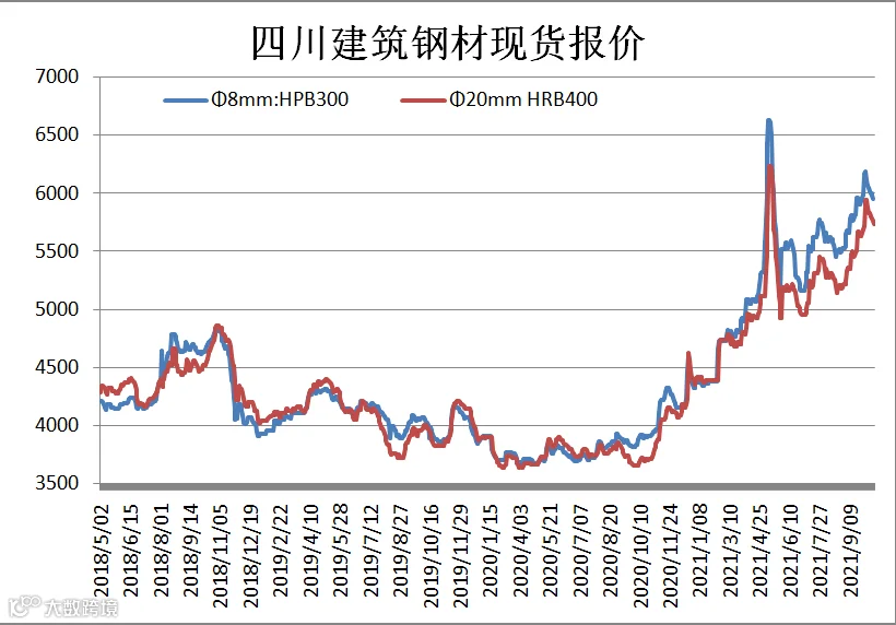据四川省钢材流通协会对成都现货市场监测显示,本期(10.16-10.22)建筑钢材价格再度承压下滑,由于煤炭受政策管控影响大幅下跌,同时带动黑色系成材期货盘面大幅下挫,导致市场恐慌情绪蔓延,商家出货降库为主。10月22日,成都地区Φ20mm HRB400螺纹钢价格为5730元/吨,较10月15日跌100元/吨;Φ8mm HPB300高线价格为5950元/吨,跌100元/吨。