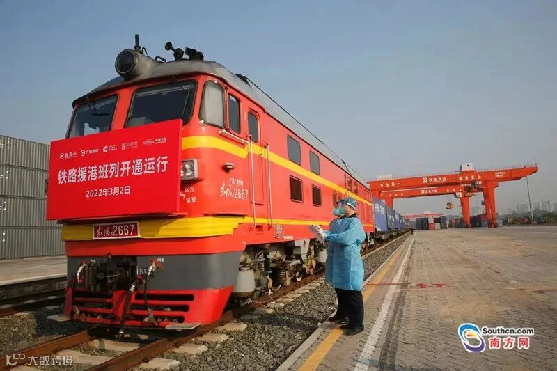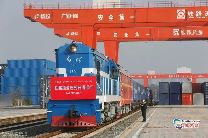 枢纽出发的首趟“中央援港 同心抗疫”铁路援港班列,满载着18个集装箱、约50吨防疫物资,顺利抵达