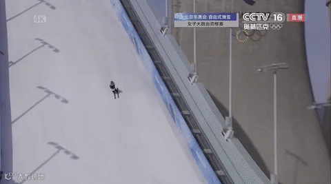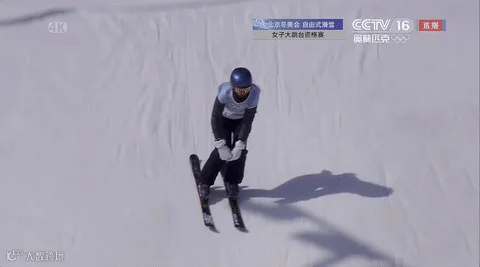 △自由式滑雪女子大跳台资格赛第2轮,谷爱凌出现失误。