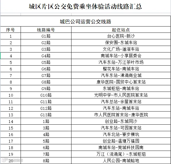 从除夕(2022年1月31日)起,市民乘坐东莞巴士下属城巴公司、小巴公司所有的公交线路(不含定制公交),刷卡(或刷乘车码)即可免费。活动将持续至2022年4月30日,活动期间不限乘车次数。