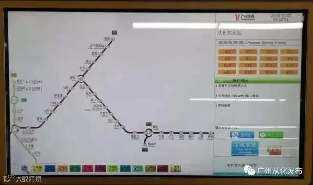 上车前,站台电视屏提醒是快车,上车后,车内的LED屏幕显示绿色快线标识和经停站点。途经钟落潭站,可清晰看到一旁轨道有慢车避让快车通过。
