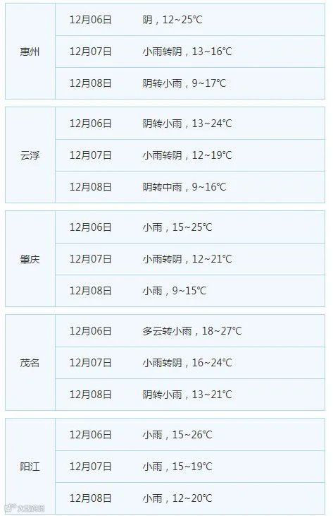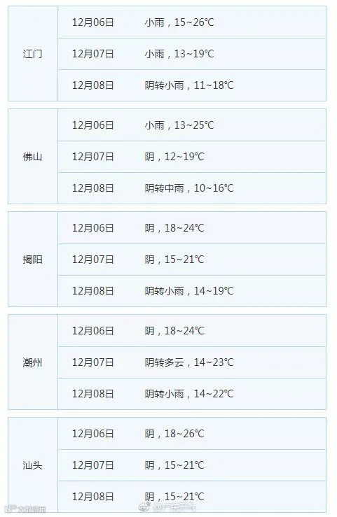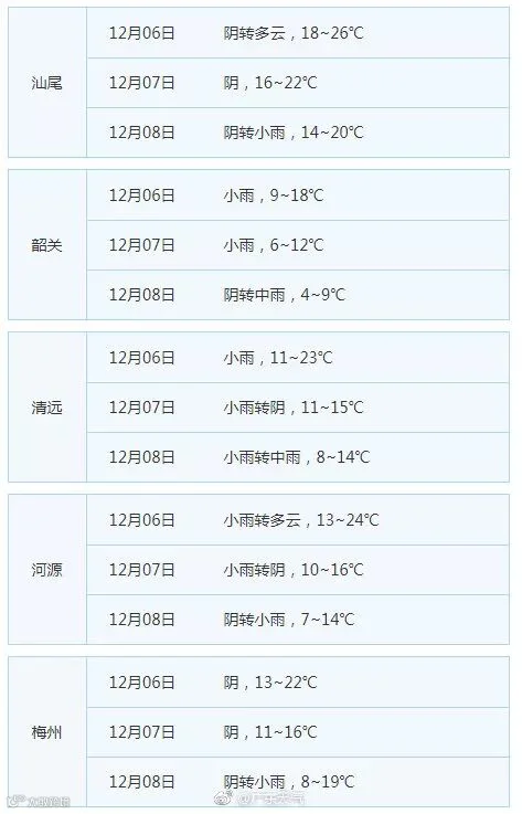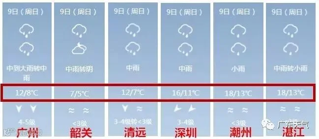 6日粤北开始冷、中南还没冷;7-8日全省阴冷;9-10日冷空气补充,湿冷(阴冷加剧);11-12日维持阴雨寒冷。