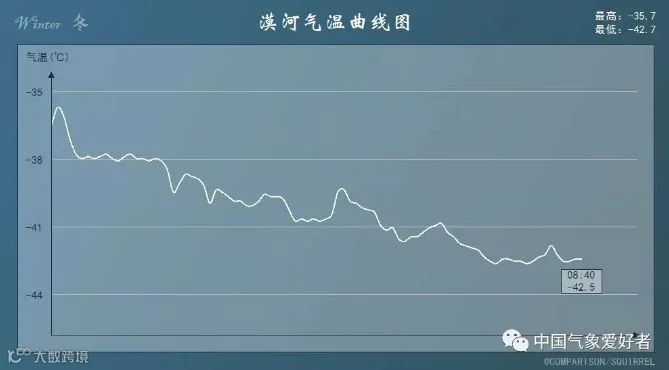 最低气温降到了-42.7度。