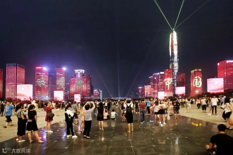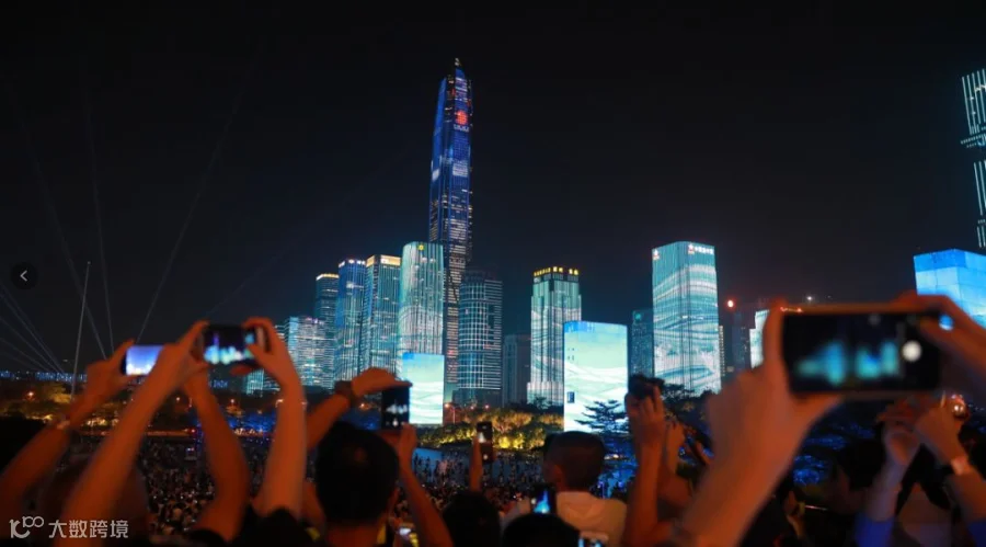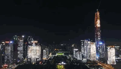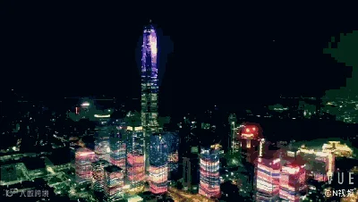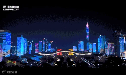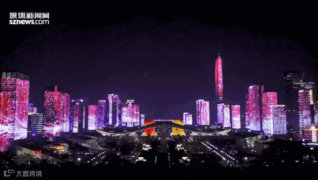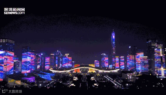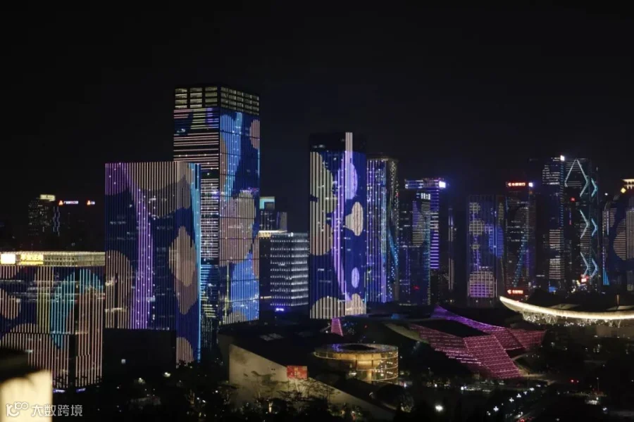 通过光影汇聚世界各地地标建筑,代表全球创新要素汇聚深圳。