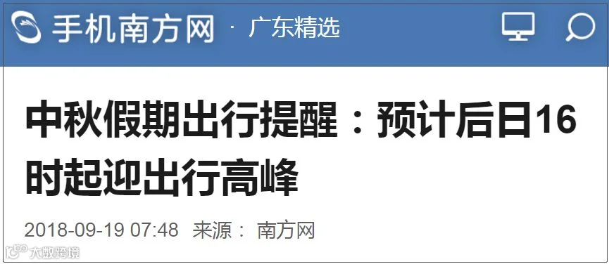 广东省公安厅交管局18日对外发出节前出行提醒:预计9月21日16时至20时为中秋节出行高峰时段,9月24日16时至20时为中秋节返程高峰时段。