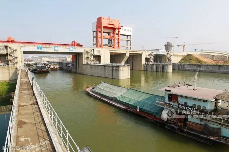 “西电东送”工程是西部大开发的标志性工程和骨干工程,坐落在西江上的长洲水利枢纽,是国家西部大开发和“西电东送”的战略项目之一,是以发电和航运为主,兼有提水灌溉、水产养殖、旅游等综合效益的大型水利水电工程。2015年1月三线四线船闸正式投入使用,西江干流3000吨级船舶可直航粤港澳,完善广西综合交通运输布局,这对吸引东部产业转移,推动粤桂合作特别试验区建设,加快西江经济带发展具有十分重要的战略意义。