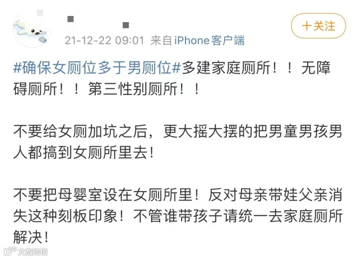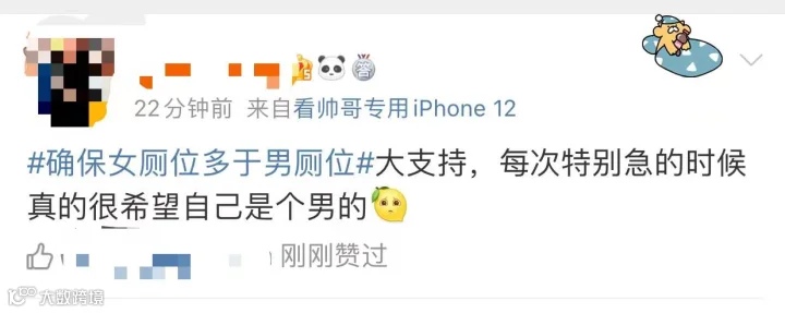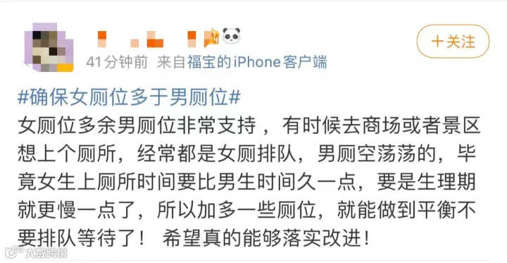 尽管从科学的角度上看,男女排尿时间差别不大,但据世界厕所组织统计,女性上厕所平均时间为89秒,男性为39秒,女性所花时间是男性的2.3倍。