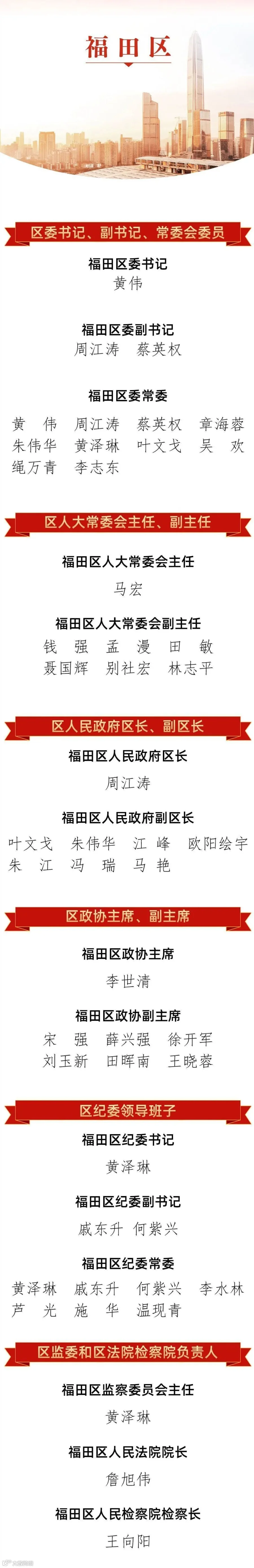 除了今年换届的上述8个行政区外,截至11月20日,光明区、大鹏新区以及深汕特别合作区的主要领导为: