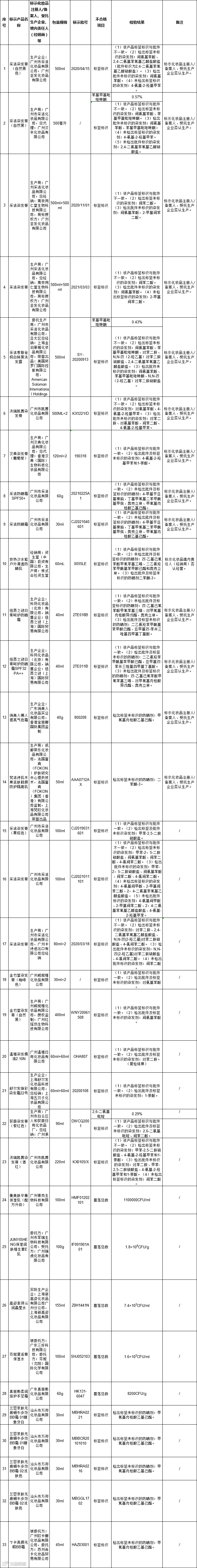 国家药监局通报33批次不合格化妆品