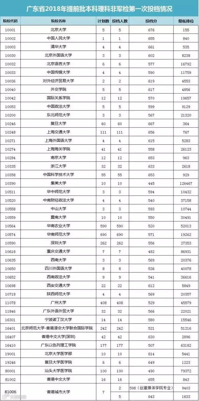 2018年广东高考提前批非军检院校开始投档录取,