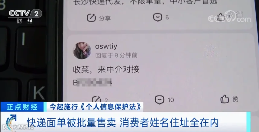 8毛钱就能买到一张写有消费者姓名、电话、家庭住址等隐私信息的快递面单照片?