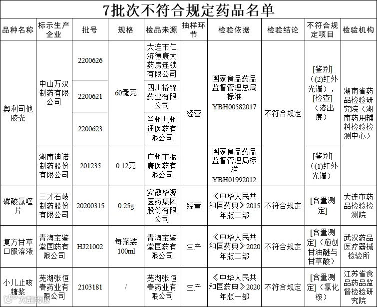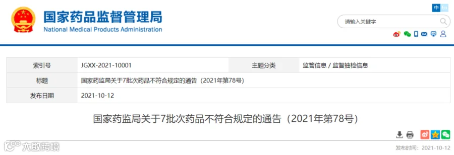 国家药监局官网发布了关于7批次药品不符合规定的通告。