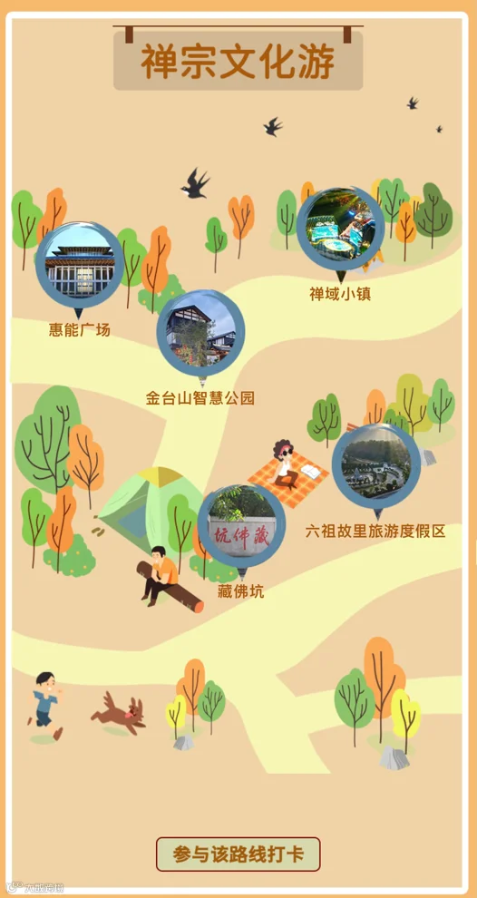 禅宗文化游(惠能纪念广场——金台山智慧公园——禅域小镇——六祖故里旅游度假区——藏佛坑)