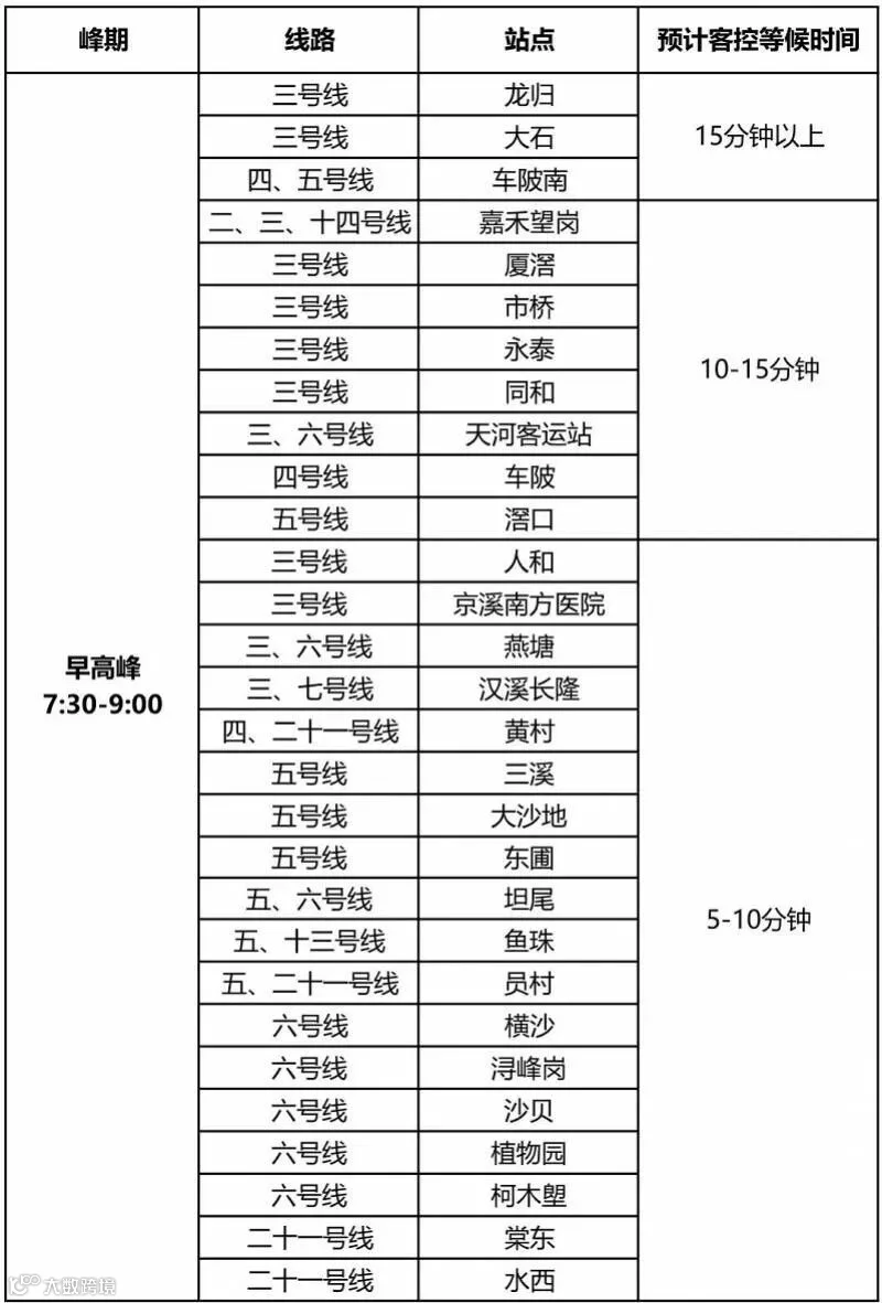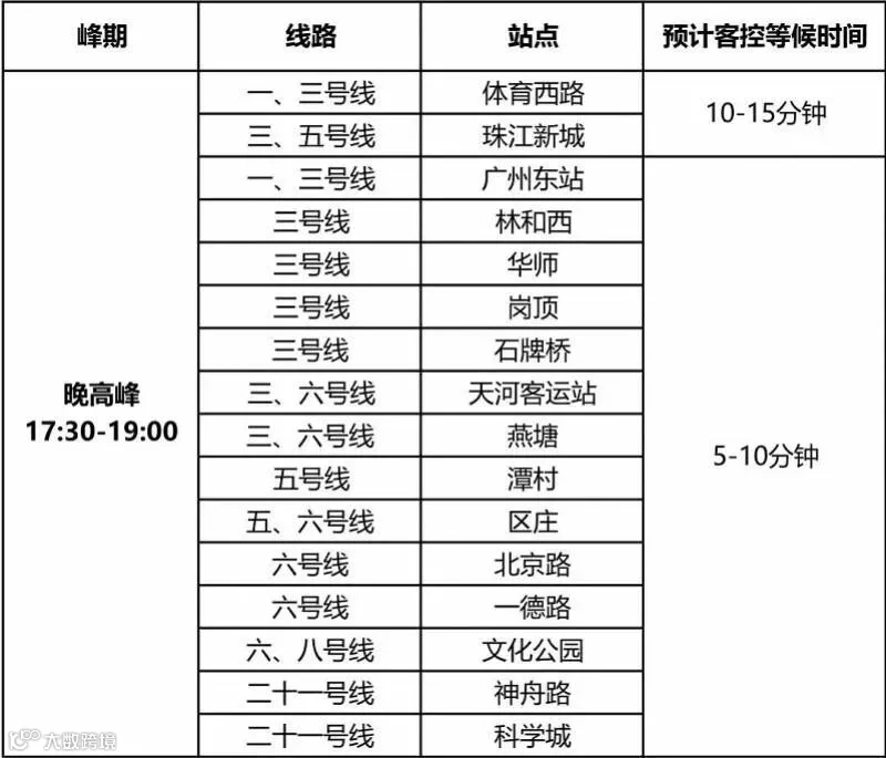 问:哪些大客流车站在高峰期,进站等候时间会比平时增加呢?