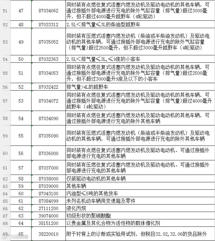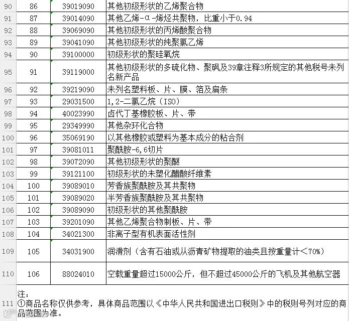一、加征关税的商品为大豆、汽车、化工品等14类106项商品。征税范围详见附表。